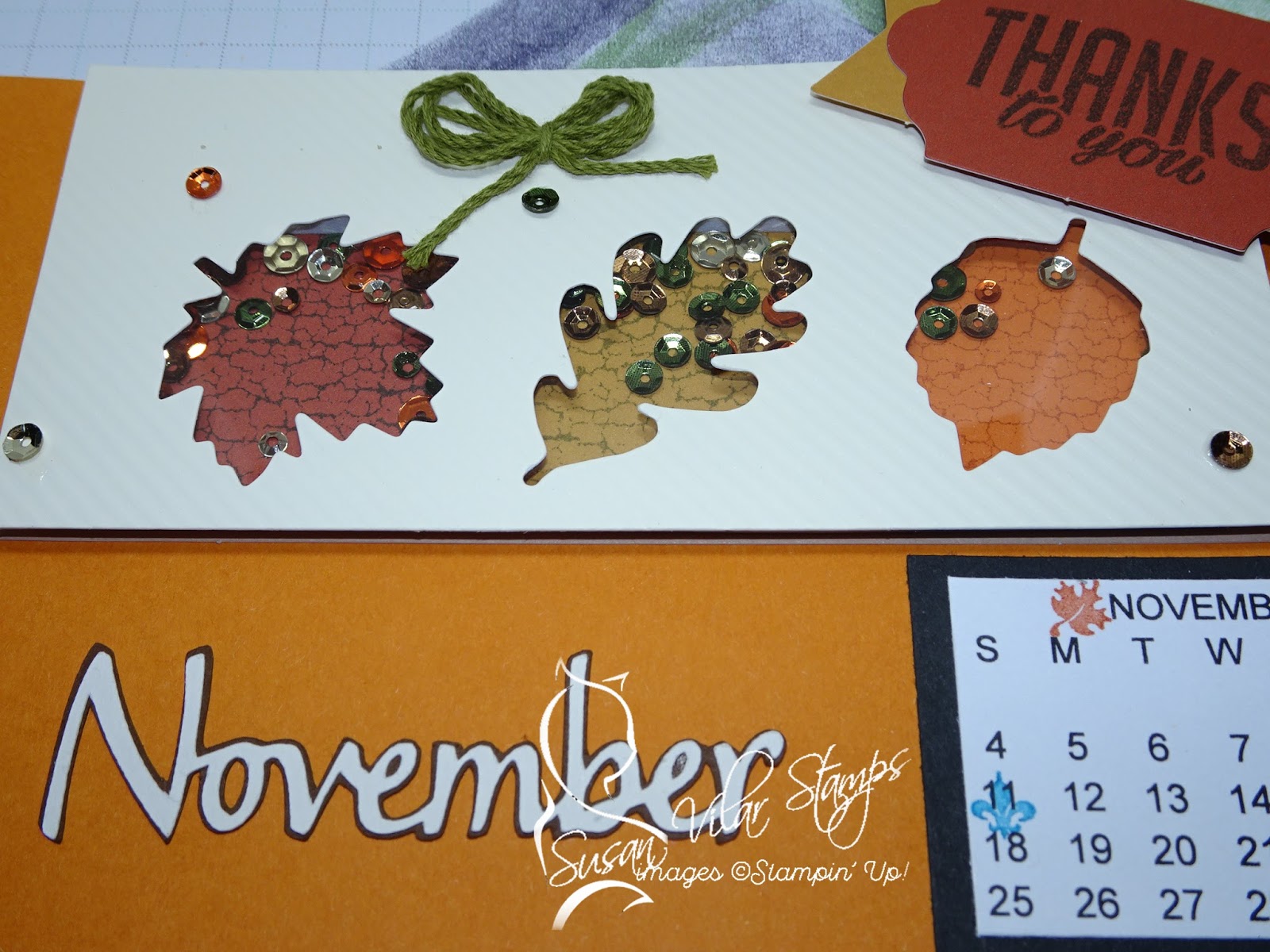 For November, we used a Paper Pumpkin Stampin' Up! set that featured shaker cards. I cut down the pieces for this calendar at Mom's request. It turned out GREAT! Fantastic idea, Mom!