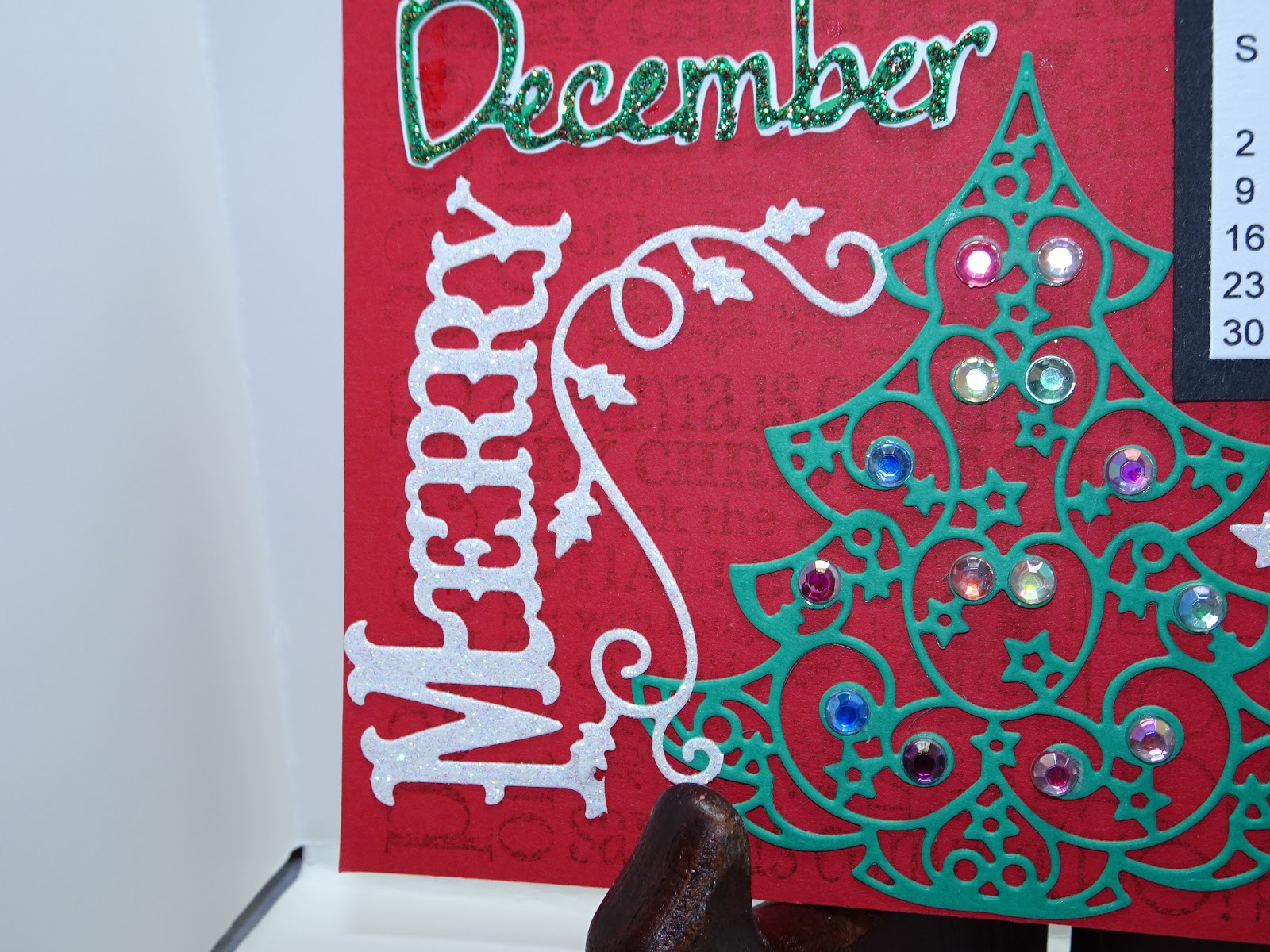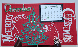 This December, notice we didn't use the regular tree with the needles and ornaments. I found a great die online that happened to be the perfect size! I then found the Merry Christmas die and after cutting them, cut it apart to make it fit.